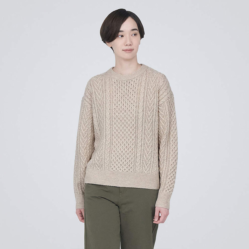 女美麗諾羊毛麻花織紋圓領針織衫
