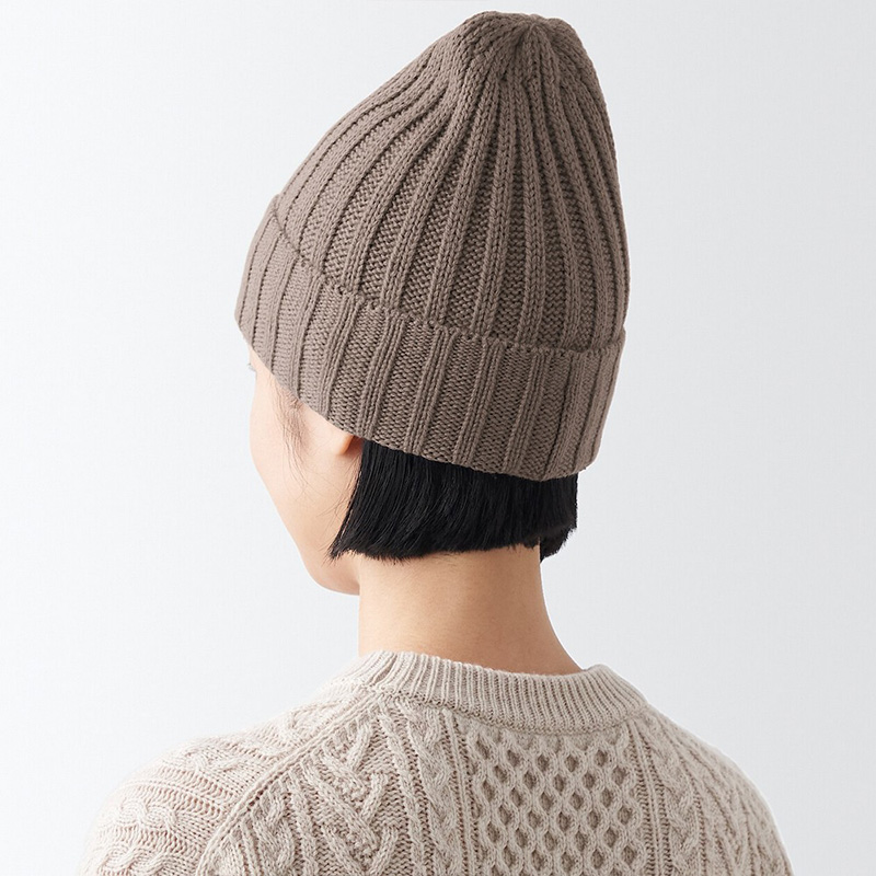 羊毛不易刺癢螺紋針織帽,599元:額頭周圍採用有機棉質素材,不易刺癢。使用棉製成。