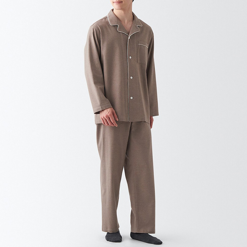 男女無側縫法蘭絨家居睡衣,1,490元:講究穿著時的舒適度,採用無側縫設計。柔軟的肌膚觸感是其特點。使用有機棉製成。
