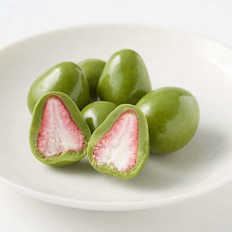 無選別宇治抹茶含餡草莓,99元:使用歷史悠久的京都茶舖特調抹茶粉,將不分大小的整顆草莓冷凍乾燥後,裹上抹茶可可。