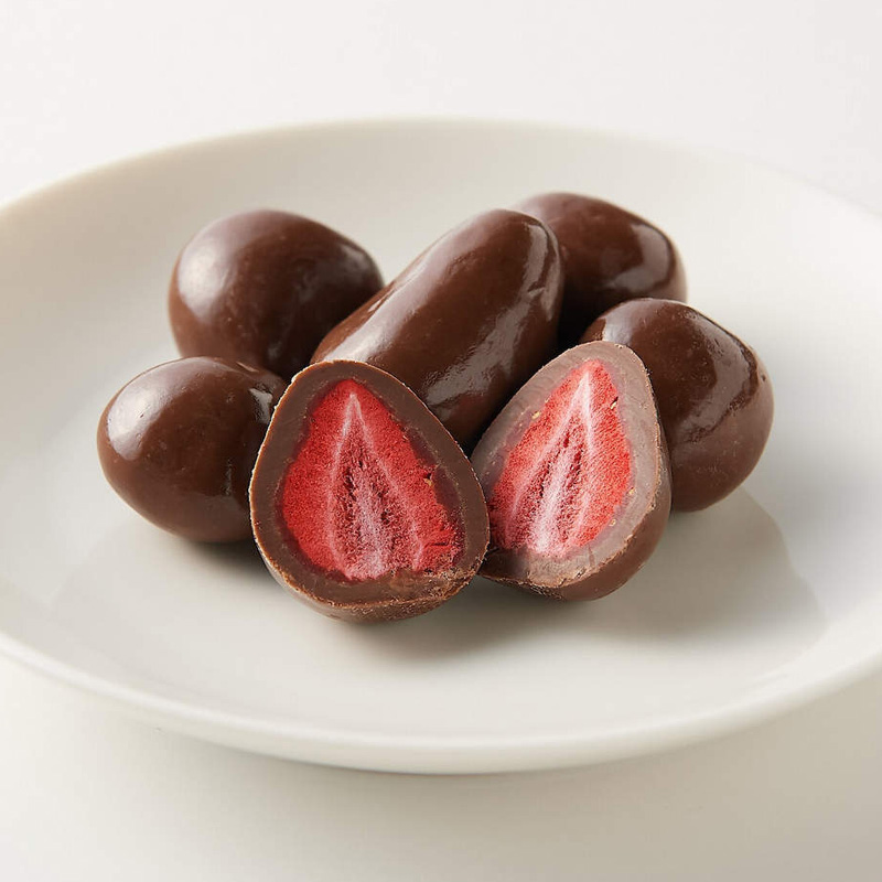 無選別黑可可含餡草莓,99元:將不分大小的整顆草莓冷凍乾燥後,裹上黑可可。