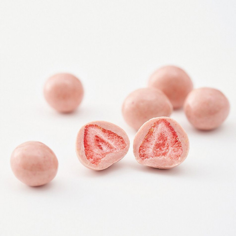 無選別白可可含餡草莓,119元:將不分大小的整顆草莓冷凍乾燥後,裹上牛奶風味白可可,享受奶香濃郁與果香酸甜。