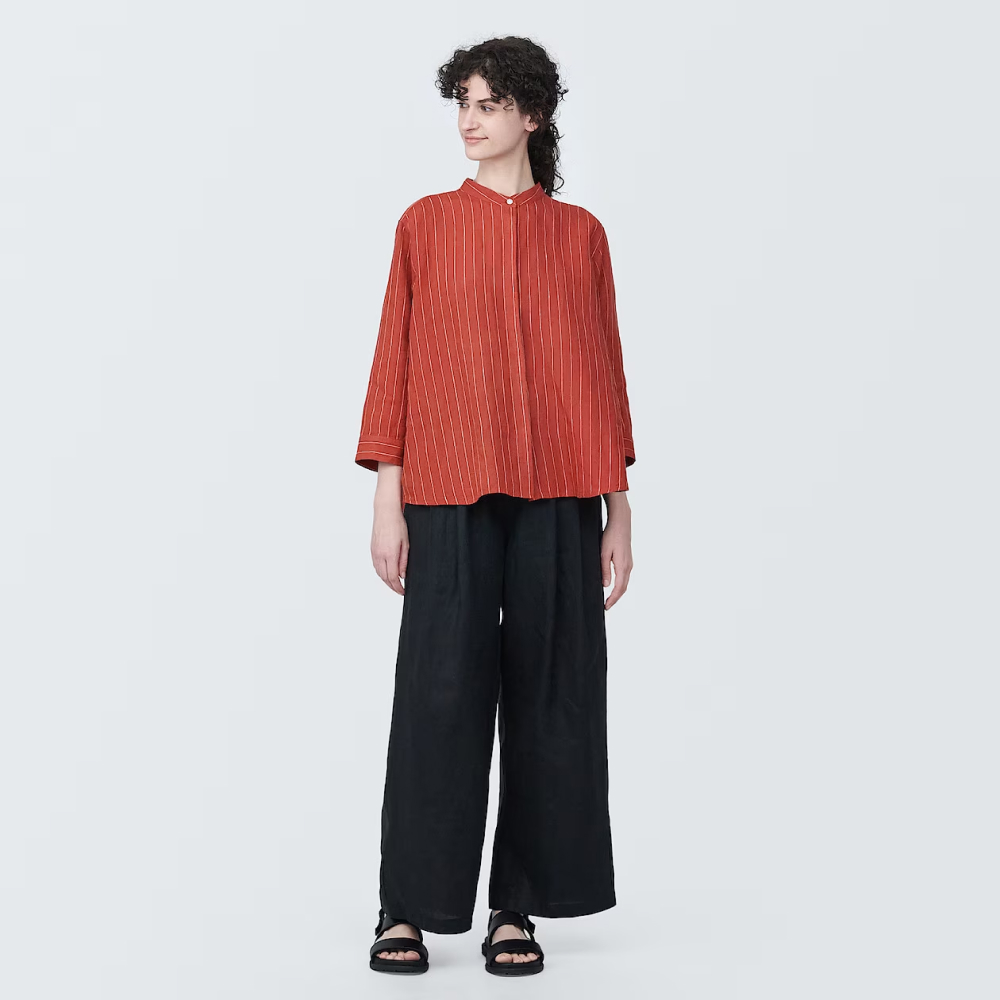 MUJI無印良品2024年春夏新品展示會曝光各類生活新品-首先今年MUJI無印良品在服飾配件的顏色與設計上,提出更多嘗試,除了基本款的各類T恤都有新色推出外。在亞麻與大麻系列也提供連身褲系列及寬襬裙的新款造型。新上市的馬杜拉斯格紋服飾系列則以異國的配色與布料的輕薄特性,有望吸引更多消費者關注。