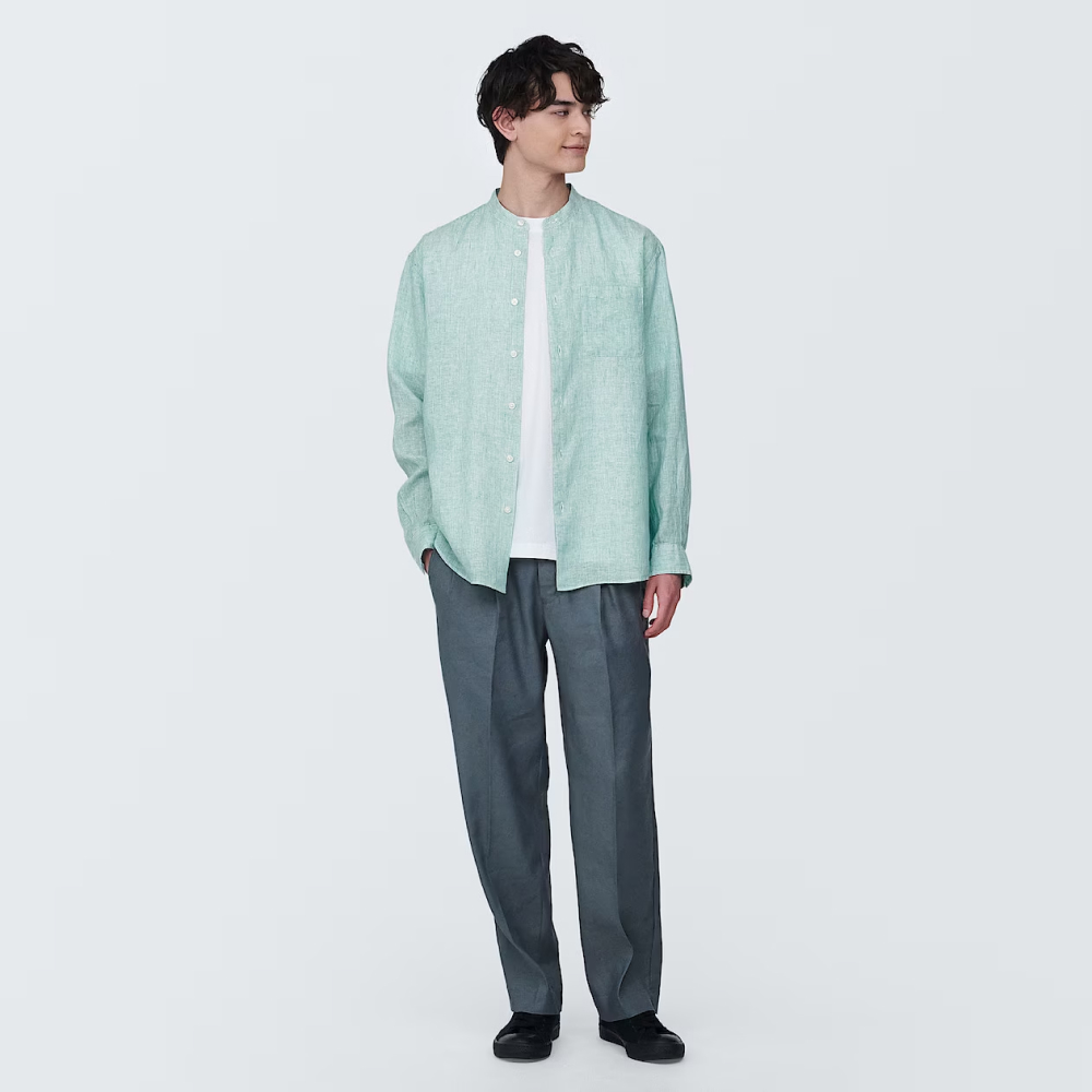麻料具有優異的透氣性且吸濕、速乾,涼爽的穿著觸感十分適合炎熱的夏季。由於麻強韌又有彈性,隨著穿著、洗滌的次數增加,穿起來會更加柔軟親膚,是可長久穿著的素材,售價890元起。