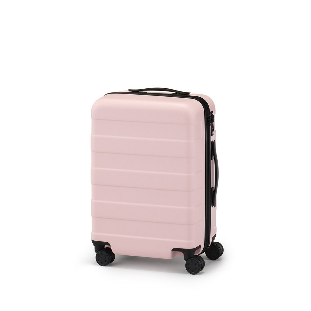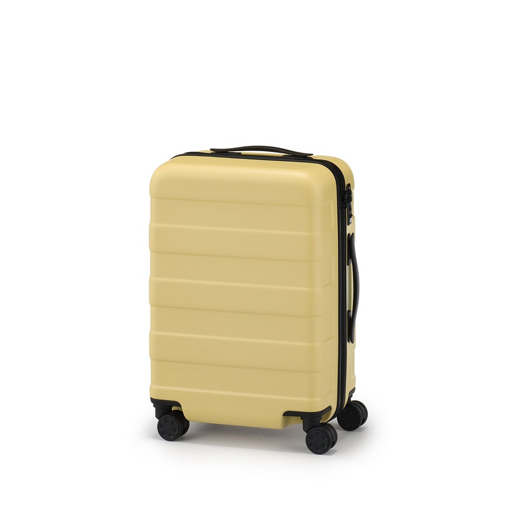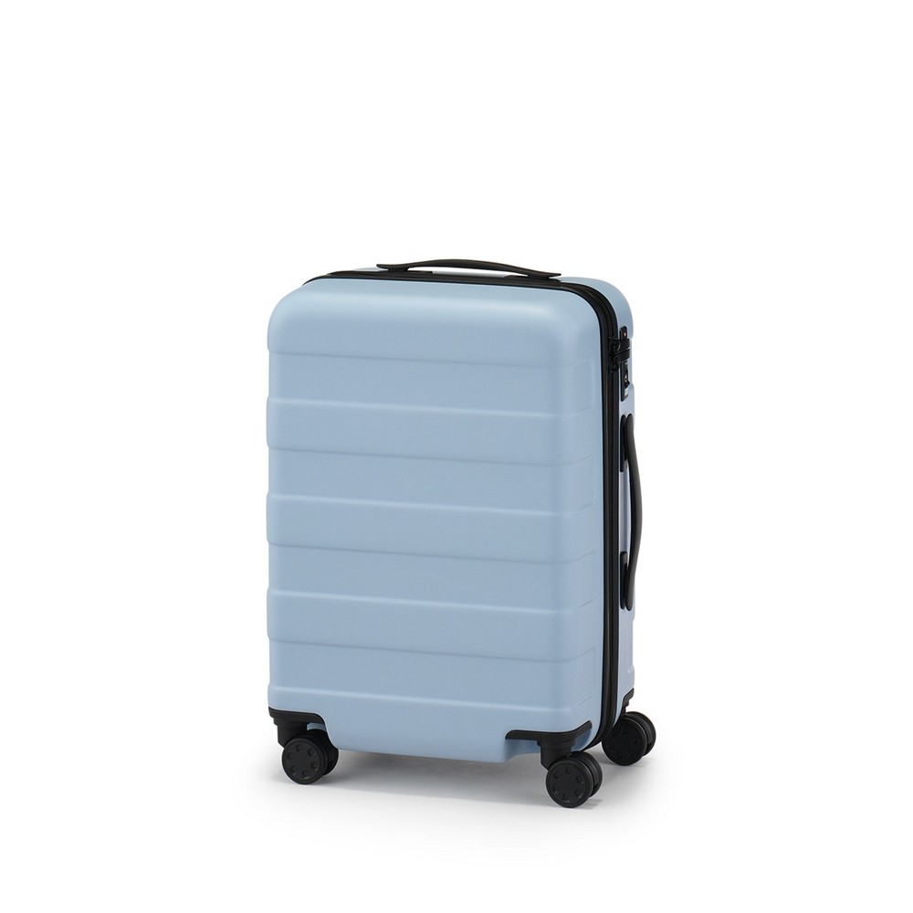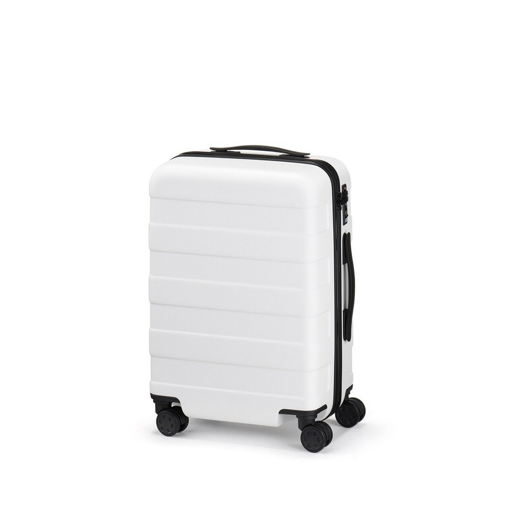 四輪硬殼止滑拉桿箱規格多樣,包含20L、36L、75L、和105L,不論2天1夜或10天以上的旅程,都能用一只旅行箱完成所有物品打包。在素材選用上,四輪硬殼止滑拉桿箱箱體為聚碳酸酯製成,堅韌不易損壞,內層則是使用回收桶裝水瓶製成的再生聚碳酸酯,降低二氧化碳排放的同時也愛護環境。雙輪式實心構造的輪子,再加上按壓式止滑鎖功能,方便顧客使用,令旅途更平穩舒適。