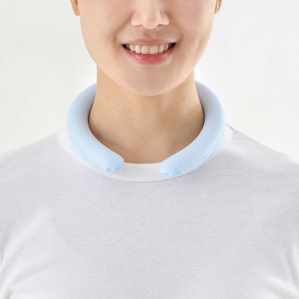 夏季涼感商品需求量大,涼感頸圈中所使用的填充物為具有溫度調節功能的PCM(phase change material)材料,在29゚C以下為固態,當與人體接觸時會吸收體溫,達到降溫效果,吸收熱能後會變成液態。液態後可放入冰箱冷藏,待凝固後再帶上即能感受涼意,且可重複循環使用。售價490元。