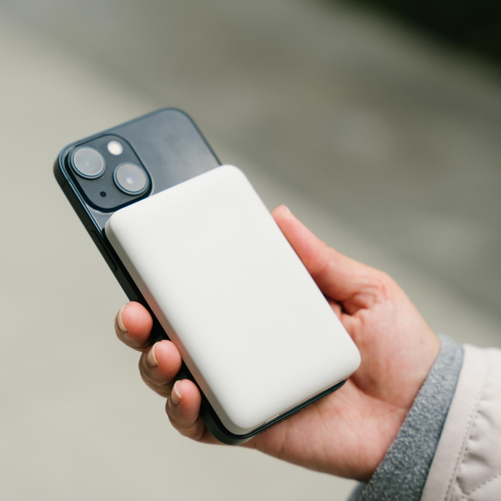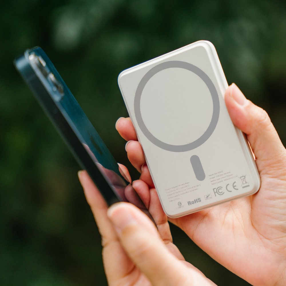 為支援緊急充電需求並滿足輕便好攜帶的體積,今年新開發5,000mAH的行動電源,磁吸式設計可直接吸附手機,不需額外使用線材,使用更方便。售價1,190元。