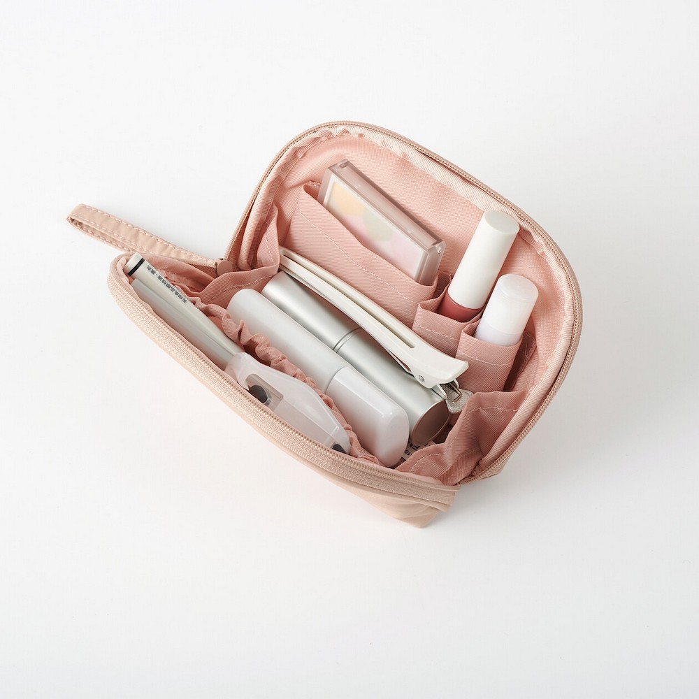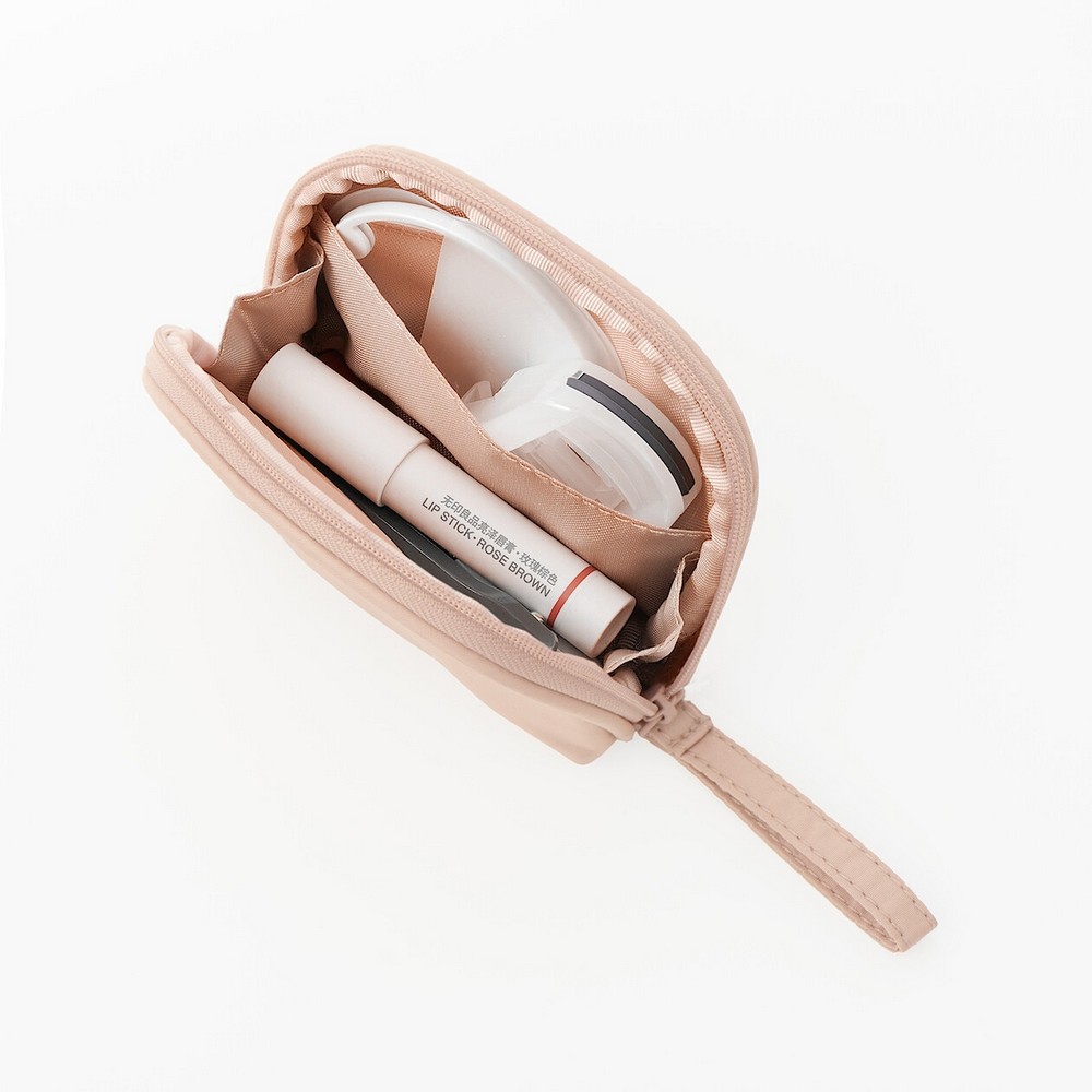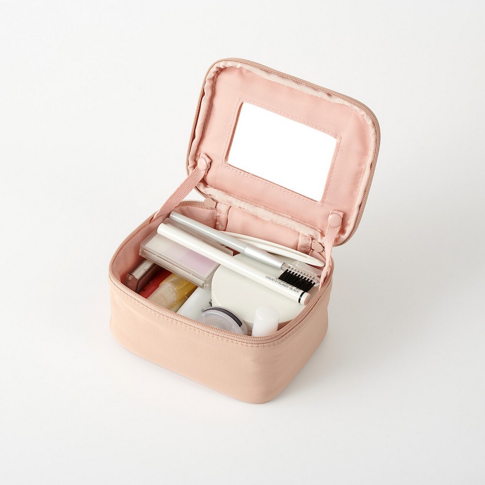 除了門市既有的黑色化妝箱及化妝包系列外,MUJI無印良品今年春夏首度提出較繽紛的色彩:粉米色。款式上也針對隨身需求,引進了較小的尺寸與可隨身攜帶的小化妝包等款式。售價170-280元。