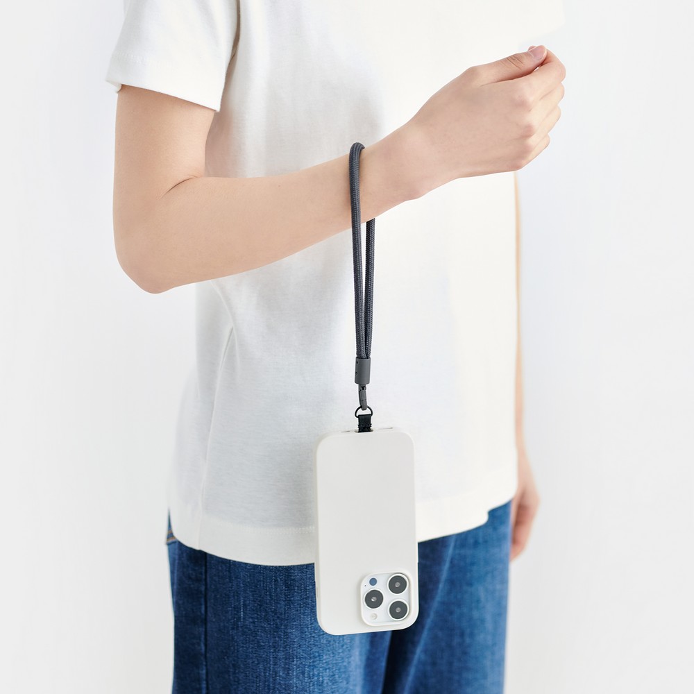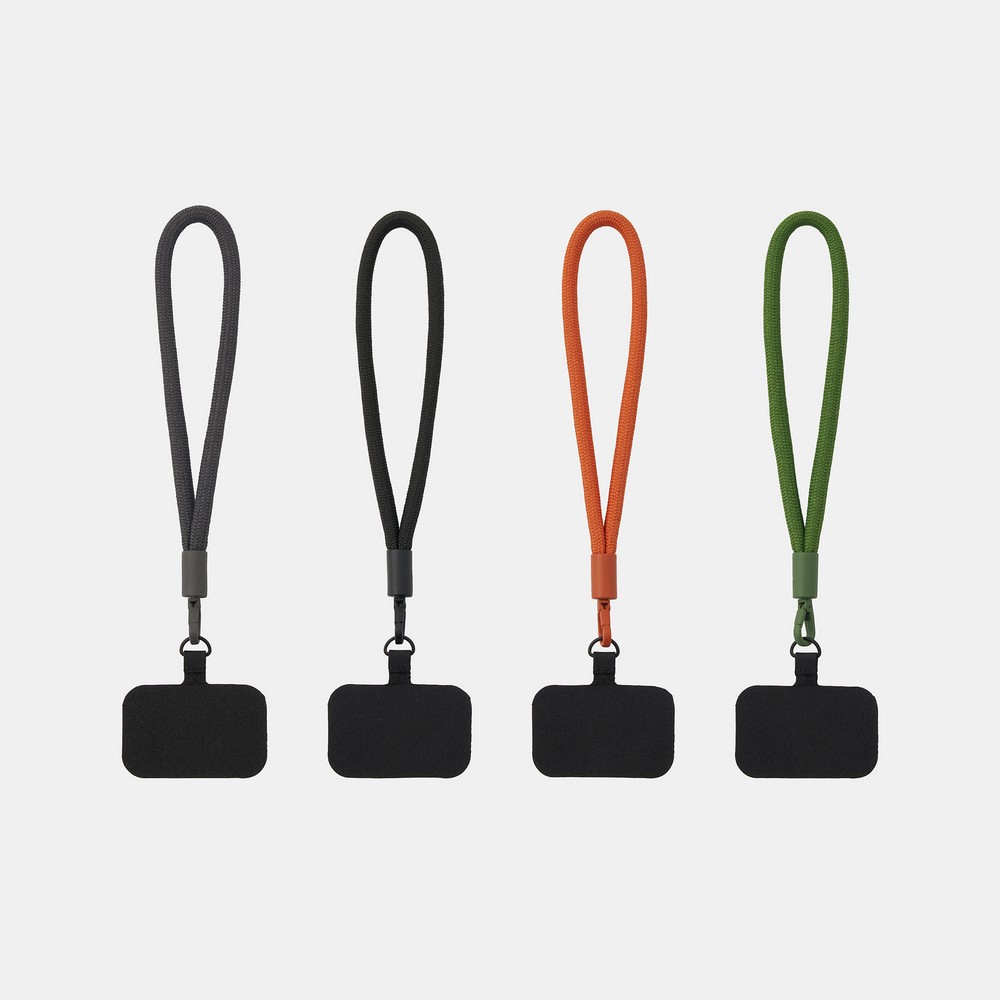 MUJI無印良品將持續擴增3C對應的相關配件,今年春夏新推出手機掛繩,分為背帶式和腕帶式,並包含四種顏色:深灰、黑、綠及橘色,色調亦可與自由組合包搭配。售價150-199元。