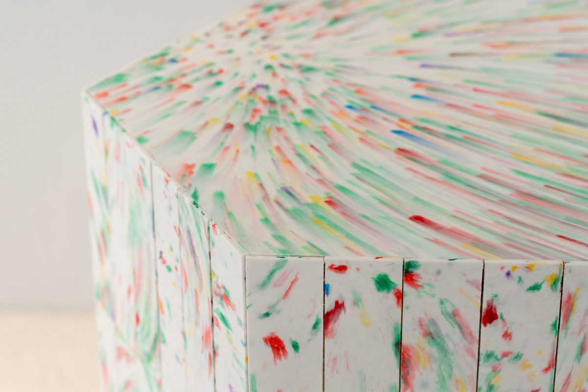 「木絲水泥」為多功能合一的綠建材,主要以「60%木絲+40%水泥+水」製成,木材來源都來自台灣永續林場的疏伐木,讓砍伐後的木頭持續發揮價值。