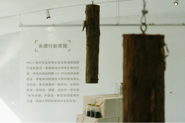 透過國產豆奶系列新品的開發與生產,MUJI無印良品除了期盼提升節水米糧的種植面積外,也從中發現到缺水議題不應僅做到節流:種植節水米糧;更應重視如何開源:復育森林。