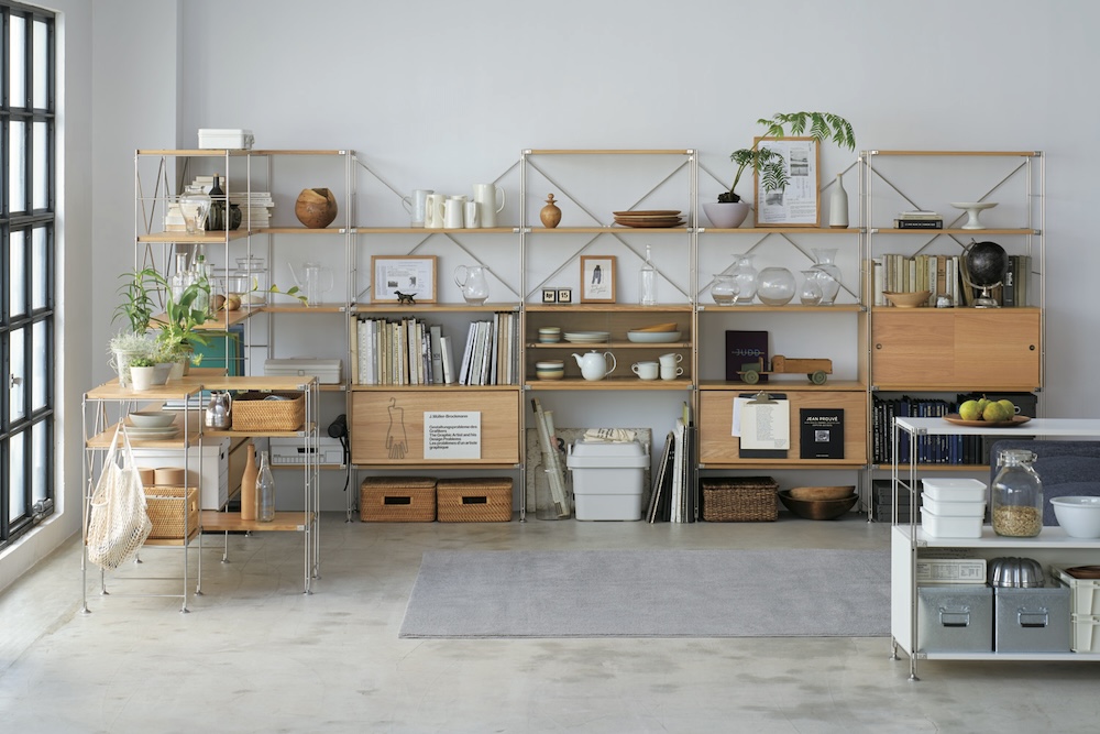 首先,SUS層架組系列有不同寬度、高度和配件可以自由組搭,用途多元,不僅可作為商店的陳列或收納櫃,也能當作桌面陳列使用。再加上MUJI無印良品的家具品項不管在色調或設計上都很簡約,非常容易融入任何空間,所以顧客也會更容易將視線聚焦在擺放於上的商品物件;同時SUS層架組的變化組合性強,也很適合因應空間大小來組搭對應。