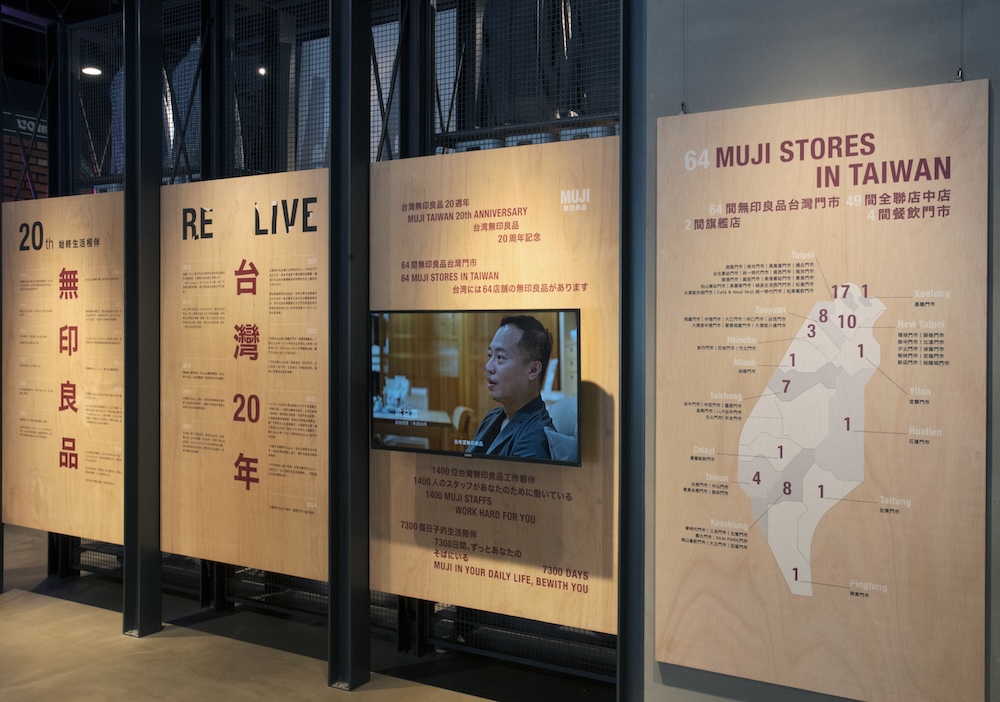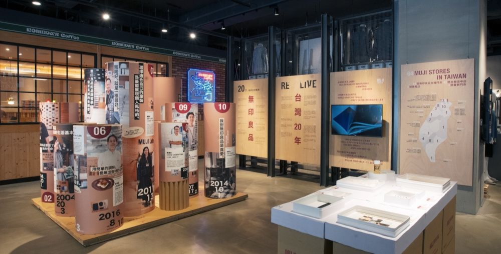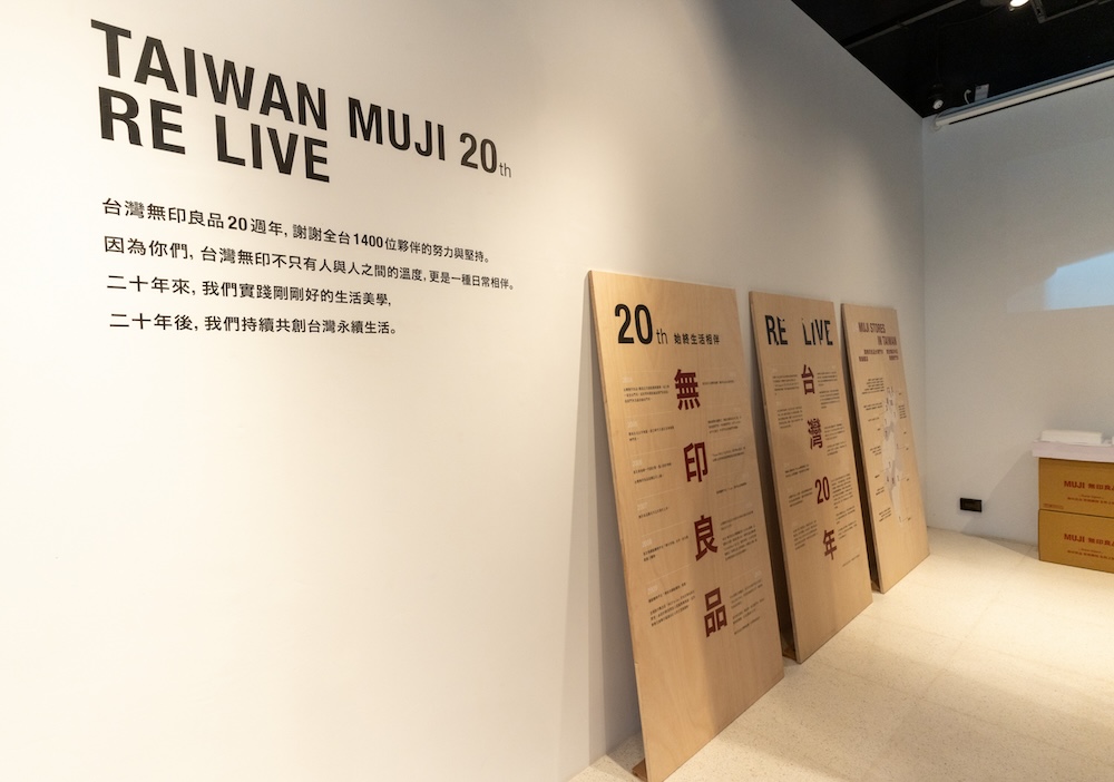 2004年第一家門市從微風廣場展開,當時引起眾多民眾爭相遊逛購物,不必出國也可以在台灣買到簡約的生活用品,一晃眼MUJI無印良品已經在台灣20年,陪伴著大家的日常生活,全台實體店鋪達到64店,4家線上購物平台,49間的全聯福利中心店中店。也因此這次的展覽主題設定為【RE LIVE 始終生活相伴】。不管過去、現在、未來,LIVE生活是動詞的延續,MUJI無印良品會一直陪伴著你我,滿足大家生活的需求與期待。