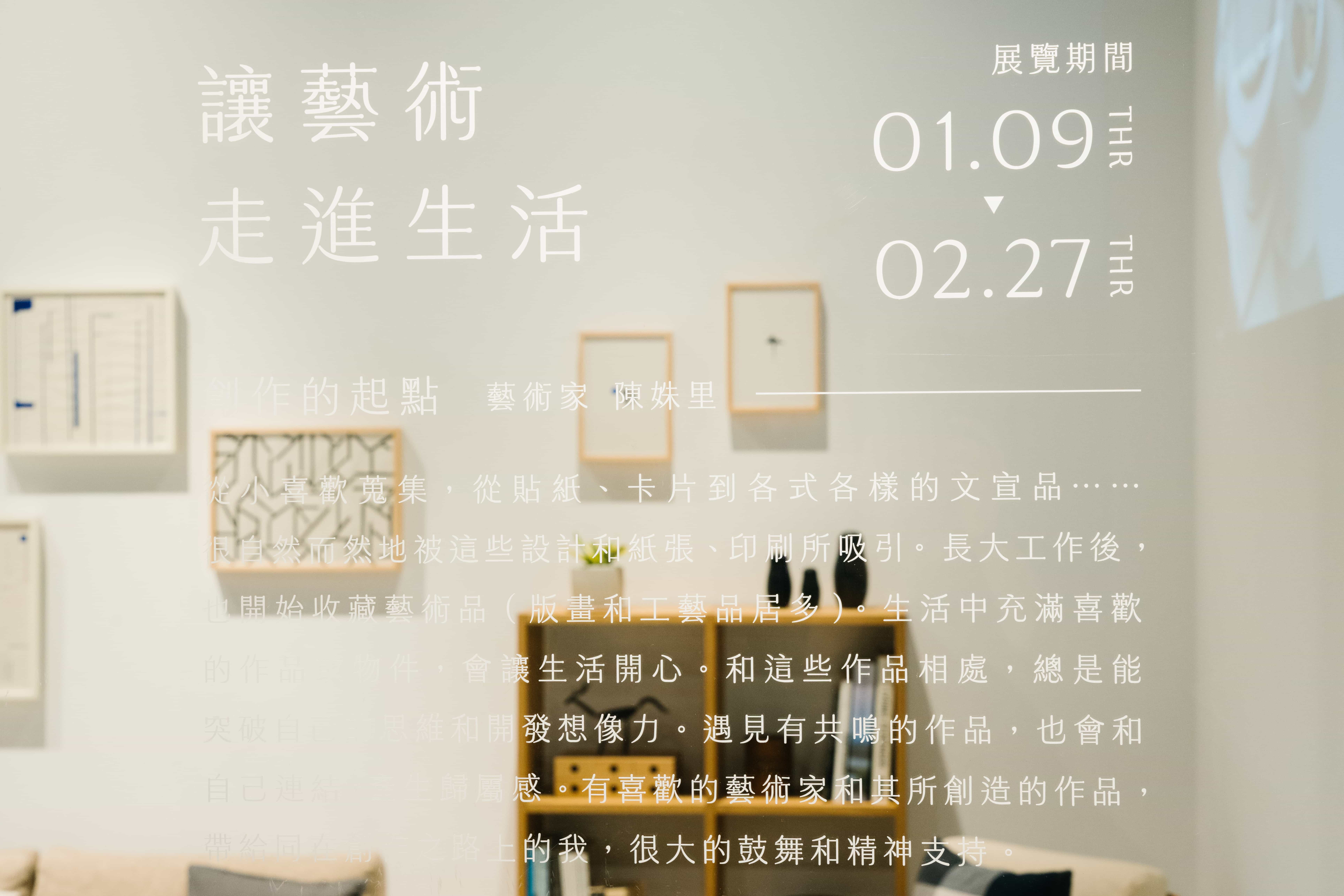 MUJI無印良品在台灣20年,始終為顧客提供日常生活的基本,但是在這些日常裡,我們期望新的一年可以為顧客帶來不同以往的生活提案體驗。這次,台灣無印良品第一次在門市呈現藝術與生活的展覽,希望讓大家發現藝術距離我們並不遙遠,在每個人的日常生活裡,即便只是一個小盆栽,一瓶小花,或是一幅畫作,這些都能讓簡單的生活增添氛圍。藝術能為日常生活帶來不同的發想與創造,在屬於自己的空間裡裝飾一幅喜歡的畫作,空間中的氛圍流動也將變得不同。MUJI無印良品希望透過首次的「讓藝術走進生活」展,可以提供觀者一點點的觸動,多一點點對於美感與品味的感受與想像,讓生活中多些美好,也許生活就會有些不同的小改變,慢慢地擴散,也許可以讓周圍甚至社會生活也開始慢慢變得美好。