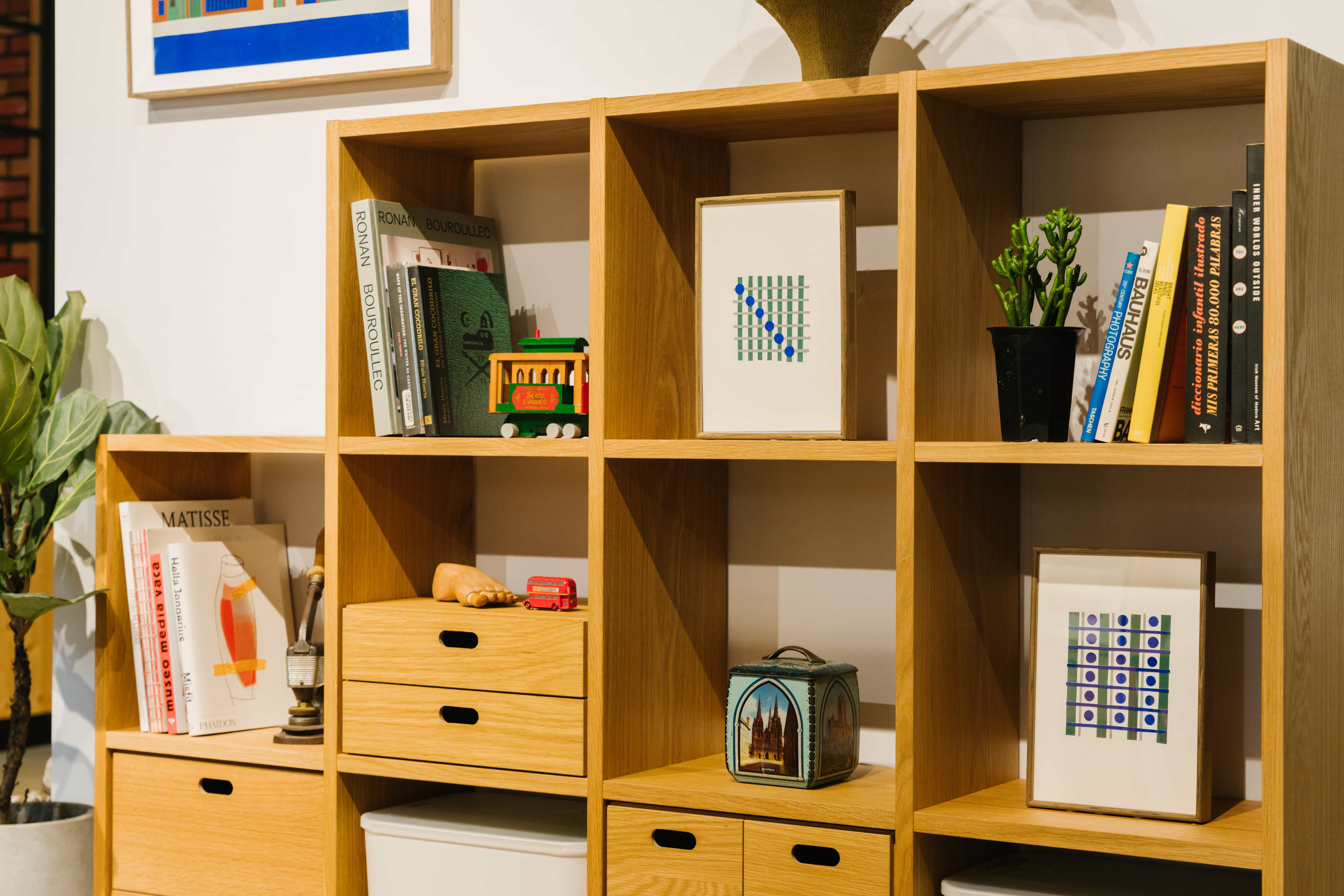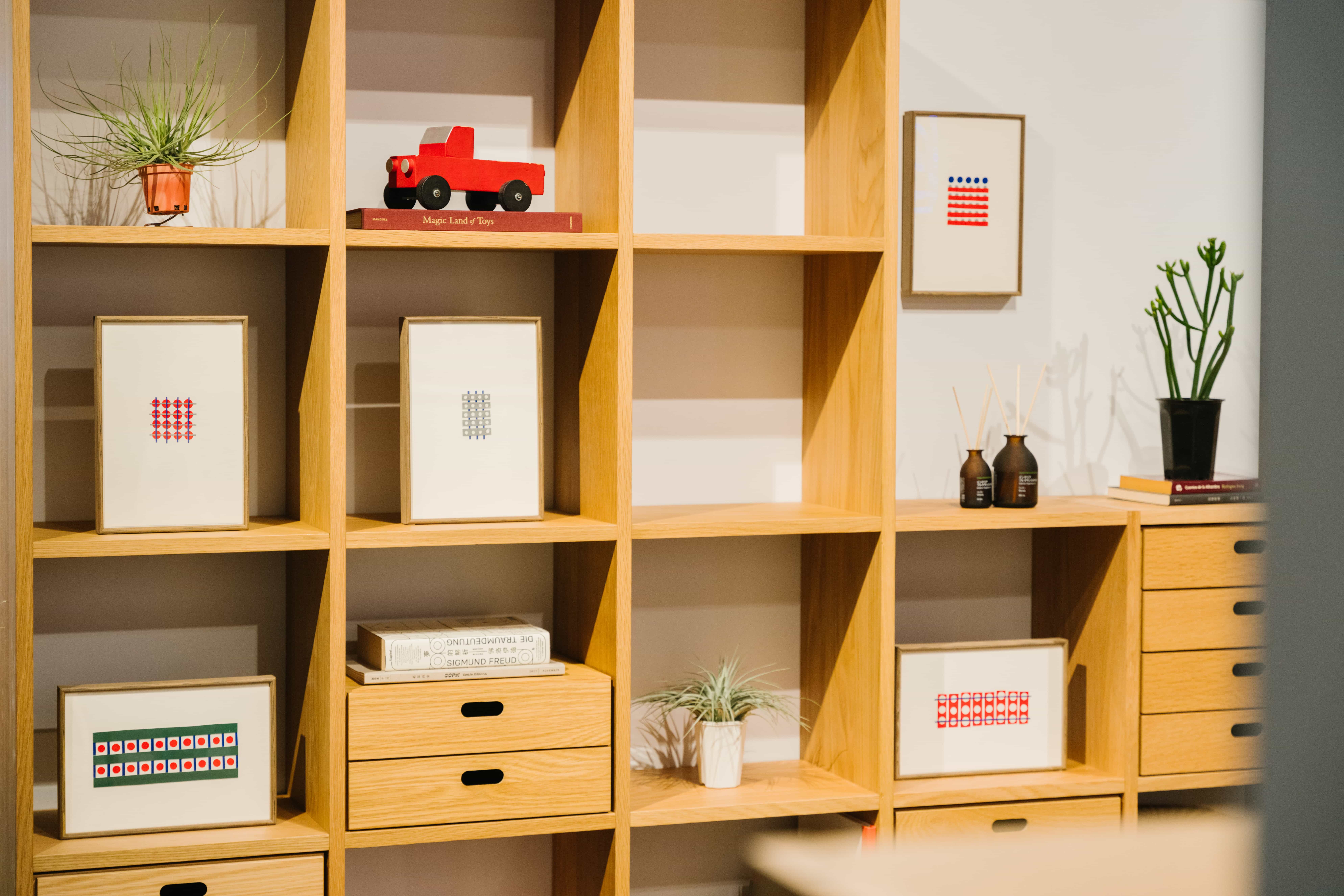 這次在台北松高門市與高雄大立門市所展出的畫作作品出自藝術家陳姝里,她的創作源自生活,每天不同的變化都是她創作的靈感來源,運用手邊的各種媒材加上版畫製作,讓每一幅作品運用簡單的線條或拼貼,卻能讓欣賞畫作的人會心一笑。這次的「讓藝術走進生活」展,藝術家陳姝里也特地挑選了多幅運用版畫製作剩餘的邊角紙材創作的拼貼作品,簡單的用料與配色,與MUJI無印良品不浪費資源的品牌概念也剛好吻合,大家可以在看展的時候,細看每一幅作品有哪些是拚貼的紙張材料呢。在展覽的現場,MUJI無印良品也創造出一種居家日常的氛圍,包含家具與書籍陳列及各式生活小物的布置,都希望可以讓觀者感受到居家感,也能想像自己的家裡也可以掛上一幅畫作,增添氣氛。