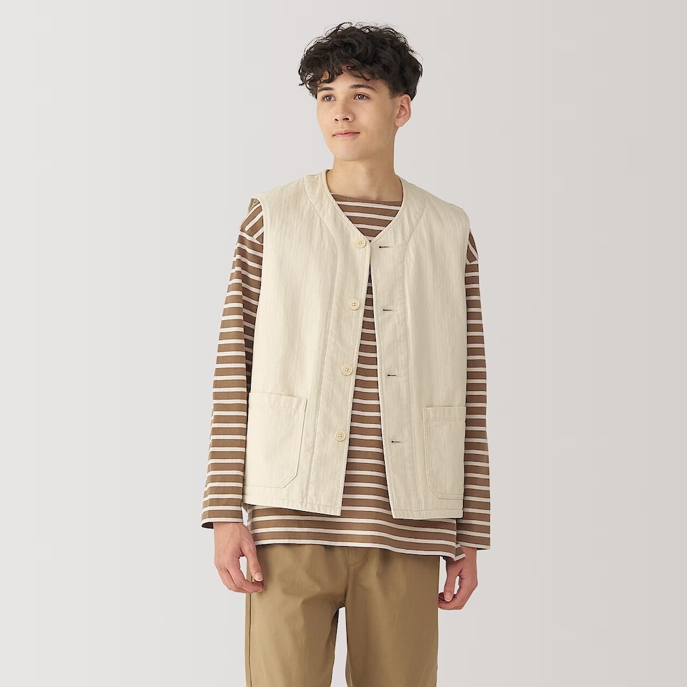 為祈求一年的好運氣,MUJI無印良品提議新春穿搭可以亮色系或粉嫩色系為主,女裝推薦三款新品,包含女吉貝木棉混二重紗織長袖套衫煙燻綠與粉紅色的女水洗棉舒適錐形褲,若氣溫下降,外層則可再搭配一件輕盈好活動的女吉貝木棉混二重紗織刺縫外套或依據不同體感,選擇更為保暖的羽絨服飾系列等。男裝推薦男吉貝木棉混二重紗織長袖襯衫,不論單穿或作為第二層罩衫都很合適。若想兼顧保暖並創造多層次風格,則可在外層選擇男吉貝木棉混人字紋鋪棉背心搭配同色系的男吉貝木棉混人字紋工作外套。下身除了有淡綠色的男水洗棉舒適長褲可供挑選外,煙燻藍的男吉貝木棉混人字紋寬版褲也是較為亮色系的單品推薦之一。