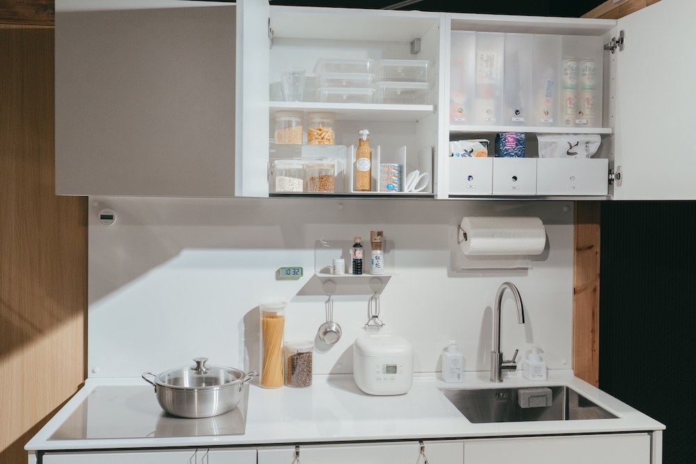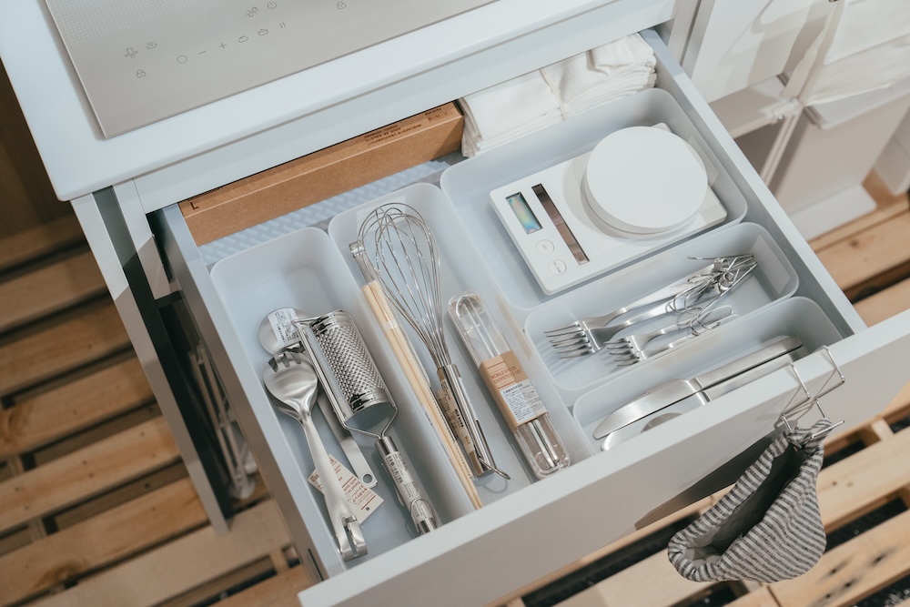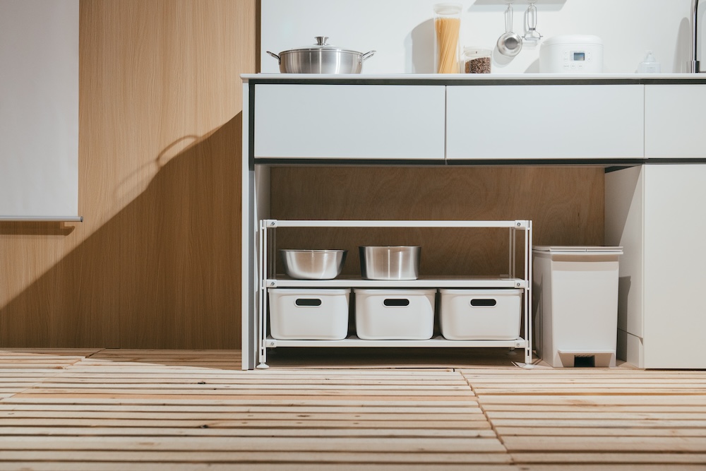 1. 模組收納 :廚具尺寸與 MUJI 無印良品的料理道具、收納盒等皆可組合搭配。
