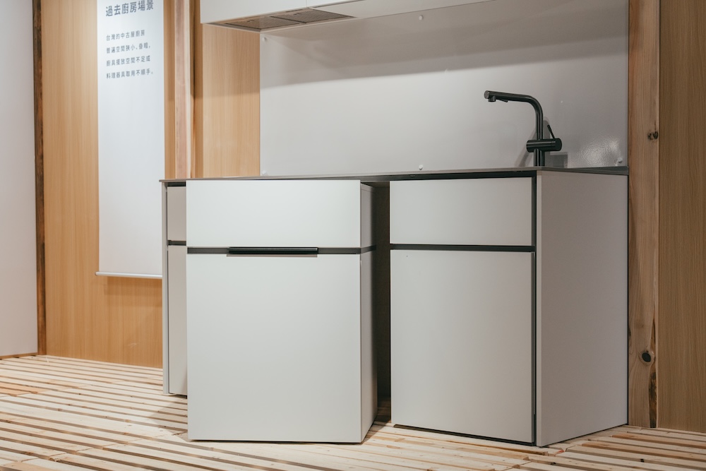 2. 可變設計 :可移動的櫃體設計,能在不同的烹飪場景中轉換使用。