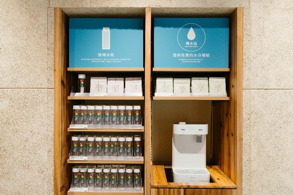 來到LaLaport南港門市在遊逛購物之外,MUJI無印良品也在門市內設置了免費「補水站」服務,可讓消費者以自己攜帶的容器盛裝飲用水。不僅如此,門市在Open MUJI區域設置「Re Park」再生共享服務,除了備有「丹寧衣物再生箱」、「玻璃再生箱」、「食物共享服務」與「保養瓶罐再生箱」外,也首次加入「紙質包裝再生箱」,邀請民眾回收於MUJI無印良品購買的商品紙製包裝。利用這些回收用品與專業回收再製機構合作,將可用資源,重新製作為全新商品,邀請顧客與MUJI無印良品共享惜物愛物的環境友善理念,同時也是一種透過消費行為,具體實踐循環經濟的行動。