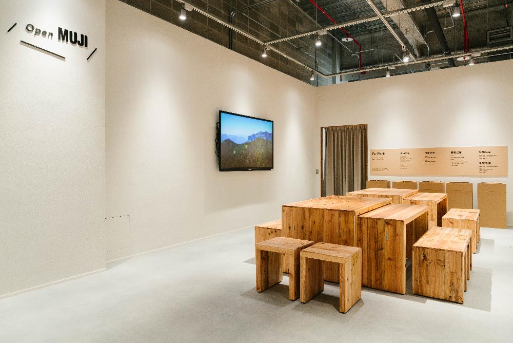 由於門市空間寬廣,LaLaport南港門市為提供休憩與親子共樂的場域,特別規劃出約20坪大的「木育廣場」及「OPEN MUJI」空間。特別是在「木育廣場」提供多款以國產材製作的木製遊具,並以主題「森川里海匯聚南港」為此區設計主軸,希望親子在遊玩的過程中,想像自然與城市連結的和諧共存。