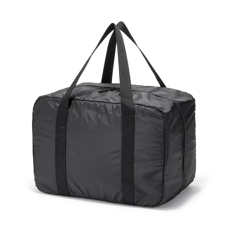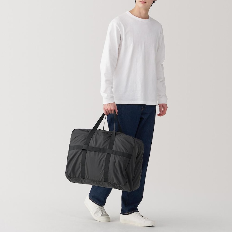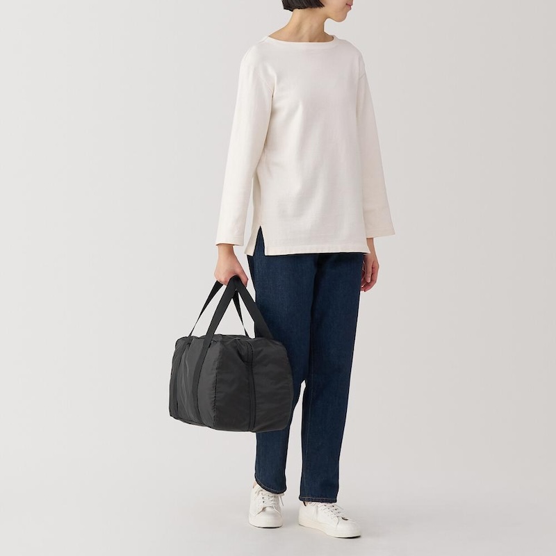 最後,為滿足顧客出國採買的需求,MUJI無印良品建議可在行李箱中放一個新上市的可折疊撥水加工波士頓包系列,共有3款尺寸,分別為36L、75L與105L,可對應四輪硬殼止滑拉桿箱使用。內有隔層設計,方便分類衣物、伴手禮等,增加收納空間,不使用時亦可折疊,輕巧好攜帶。