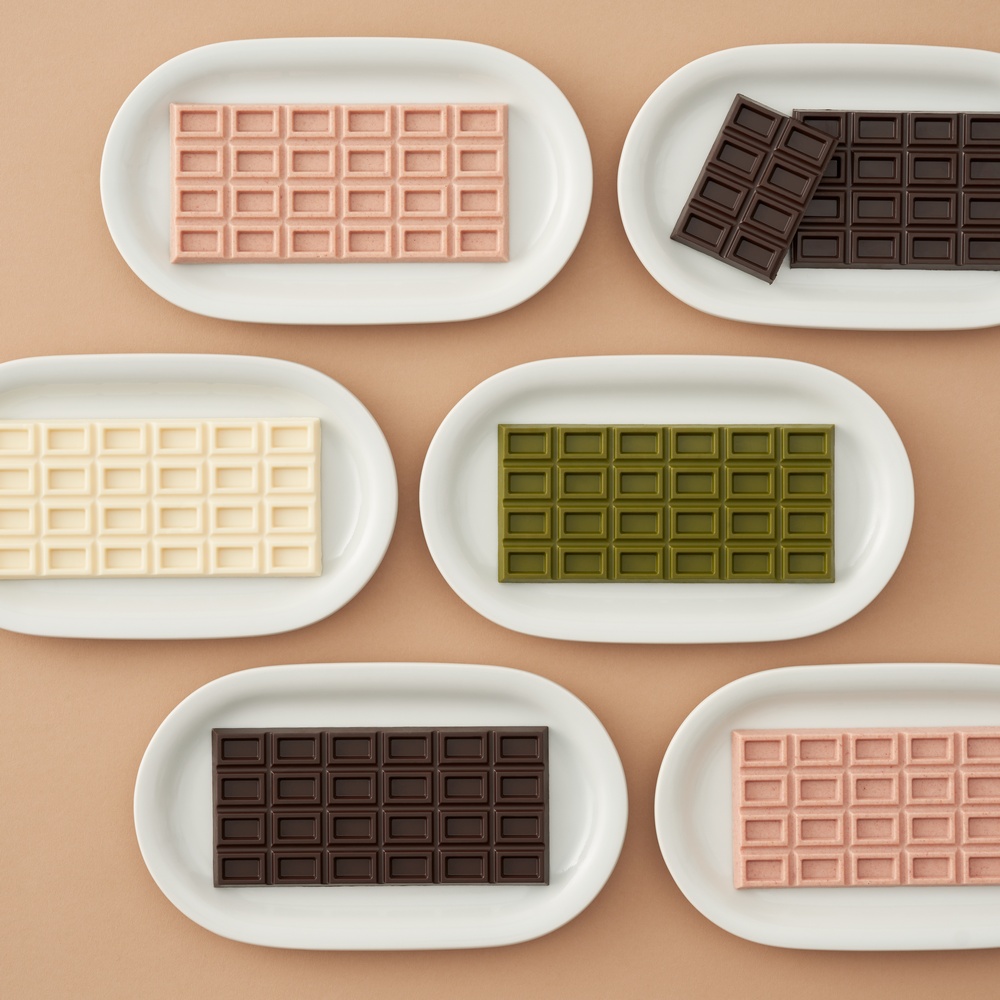 基本款的板狀可可系列以塊狀的形式呈現,不僅可單吃,也可作為甜點的基底,隔水加熱即可有多種料理變化,共有六款推薦:黑可可、抹茶可可、檸檬可可、草莓可可、伯爵奶茶可可與摩卡咖啡可可,方便顧客依據喜好挑選或搭配使用。