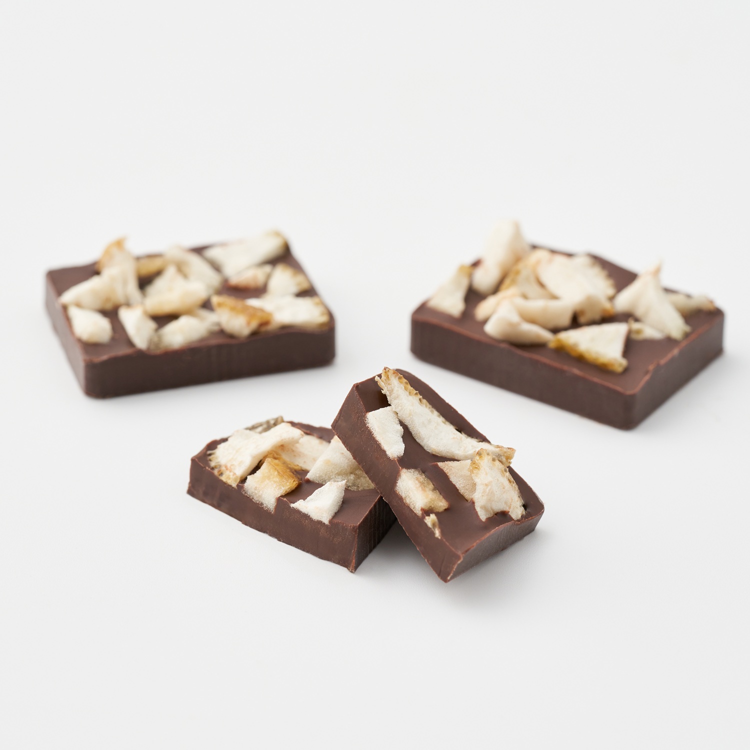 針對喜歡果香氣味與酸甜風味的顧客,MUJI無印良品的果乾巧克力系列包含有金鑽鳳梨果乾巧克力、文旦柚皮果乾巧克力、蜜桃果乾巧克力、奇異果果乾巧克力,將天然果乾與濃郁巧克力結合,打造出兼具清爽果香與滑順口感的全新系列。