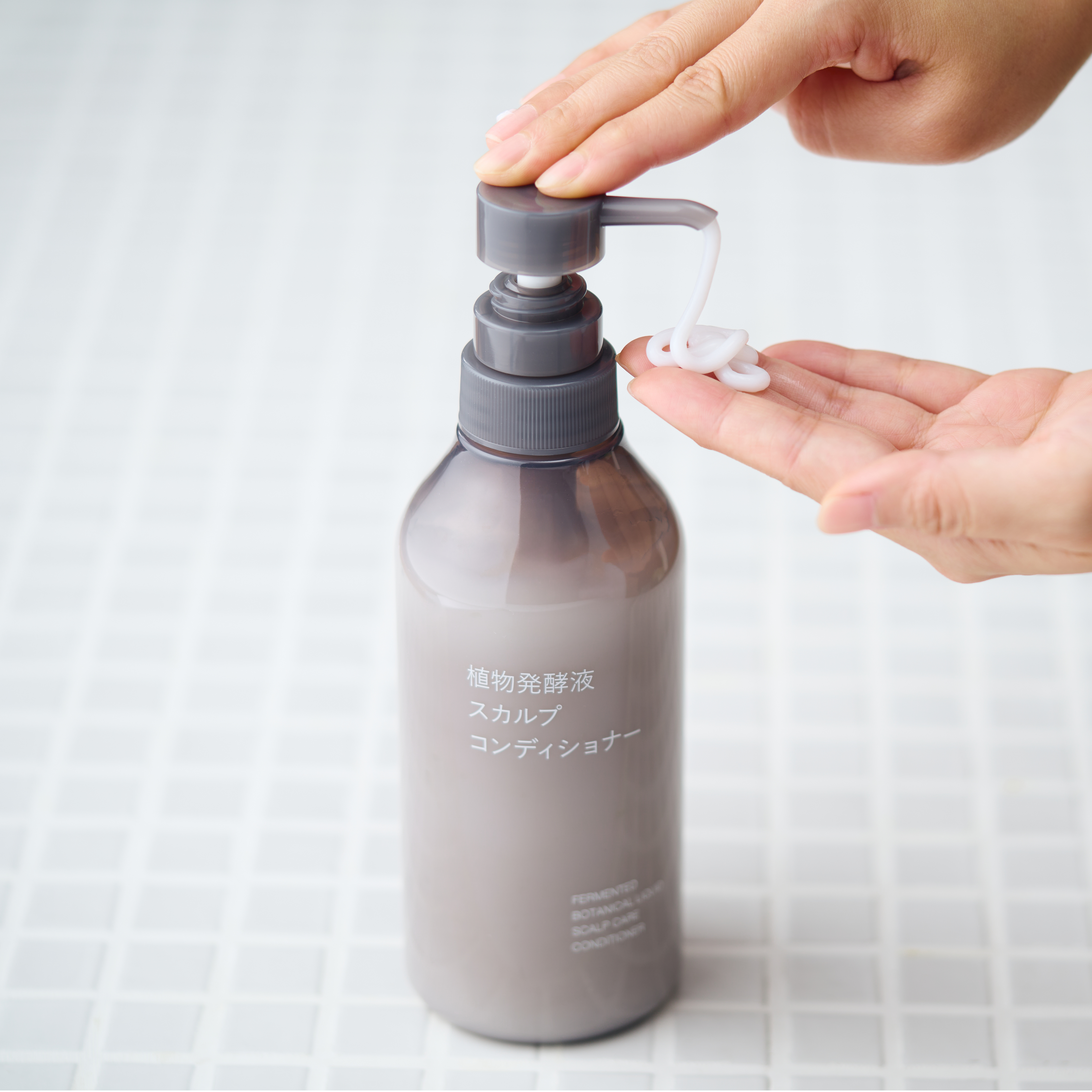 延續MUJI無印良品一貫簡潔而實用的商品開發理念,全新「植物發酵液頭皮護理系列」在瓶身上加入貼心設計─考量到沐浴時可能因為視線或手感,不易辨識產品,因此特別在植物發酵液頭皮護理洗髮精的壓頭上設計三點凸起,讓顧客即使在蒸氣瀰漫的浴室中,也能透過觸覺快速分辨洗髮精與潤絲精,提升使用便利性。