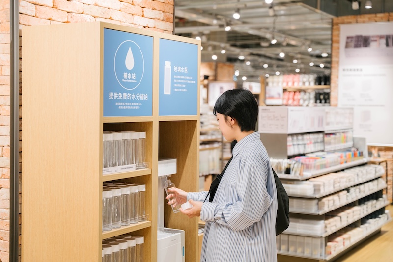 此外,門市設置MUJI無印良品長期推動的免費「補水站」服務,消費者可使用自備容器盛裝飲用水,透過生活中的小行動減少一次性塑膠瓶使用。考量「MITSUI OUTLET PARK 台南」商場假日人潮眾多,門市也設置「自助收銀」服務,顧客可透過簡單操作以信用卡或行動支付完成結帳,不僅縮短排隊等候時間,也讓購物體驗更加便利流暢。